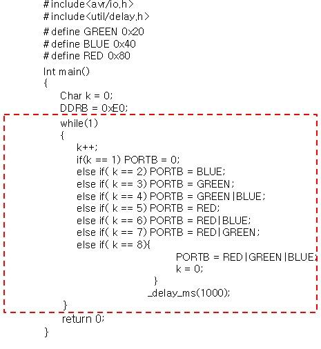 else if(k == 5) PORTB = RED;