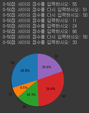 1. 5개 이하의 점수를 입력받아 파이 그래프 만들기