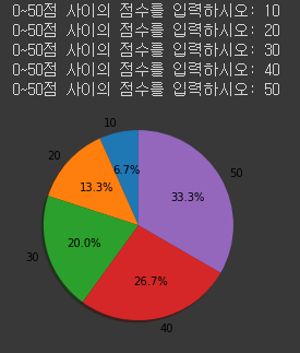 5개 이하의 점수를 입력받아 파이 그래프 만들기에 대해 알아보도록 하겠습니다.