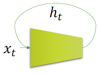 즉, 입력 x가 들어가면 출력 y가 나오는 식이다. 그런데, RNN 또는 Vanilla RNN의 경우는 다음과 같다.(RNN과 Vanilla RNN은 같은 말이라고 생각하면 된다.)