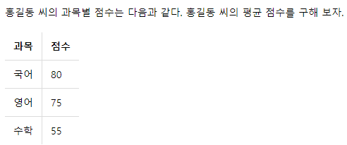 과목은 국어, 영어, 수학이 있구요. 각각 점수는 80점, 75점, 55점이네요. 어떻게 풀어야 할까요?