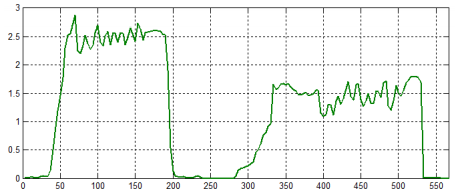그림 12는 주차의 실제 경로와 계획된 경로(녹색)의 오류를 나타내며, 빨간색 곡선은 계획된 경로이다. 그림 13에서 최대 오차는 약 10cm이고, 주차 위치에 정지했을 때 최종 오차는 약 5cm임을 알 수 있다. 그림 14는 차량의 실제 속도와 지정된 속도 사이의 차이를 나타낸다.