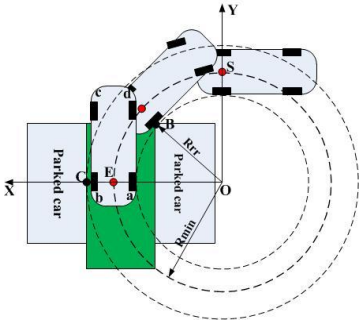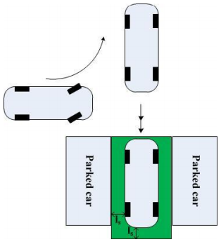 자율주행차는 유효 주차장을 감지한 뒤 출발점을 찾아 주차장으로 진입해야 한다. 자동차가 출발 지점까지 운전할 때, 차체는 주차 지점의 긴 면과 평행한 다음, 두 개의 호를 따라 그 지점에 주차하기 시작해야 하며, 그 다음에 두 개의 최소 회전 반경이 있어야 한다.