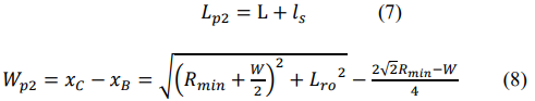 그리고 그림 3(b)는 불충분한 주차 공간 상황을 나타낸다. 이 경우 충돌 제한 조건은 다음과 같이 설명할 수 있습니다. 차량이 주차 지점을 벗어나면 우측 리어 휠이 B 지점에서 주차된 차량과 충돌하고, 좌측 리어 휠이 C 지점에서 주차된 차량과 충돌합니다.