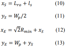 올바른 위치에 오르기 위해서는 출발지에서 L을 추가해야 한다. 따라서 시작점의 좌표는 (√2𝑅𝑚𝑖𝑛 + 𝑥𝑆 + 𝐿,⁡𝑊𝑝 + 𝑦𝑆)이다.