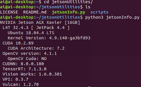 Jetson Xavier 관련 버전 정보 확인을 하기 위한 Jetson Utilities