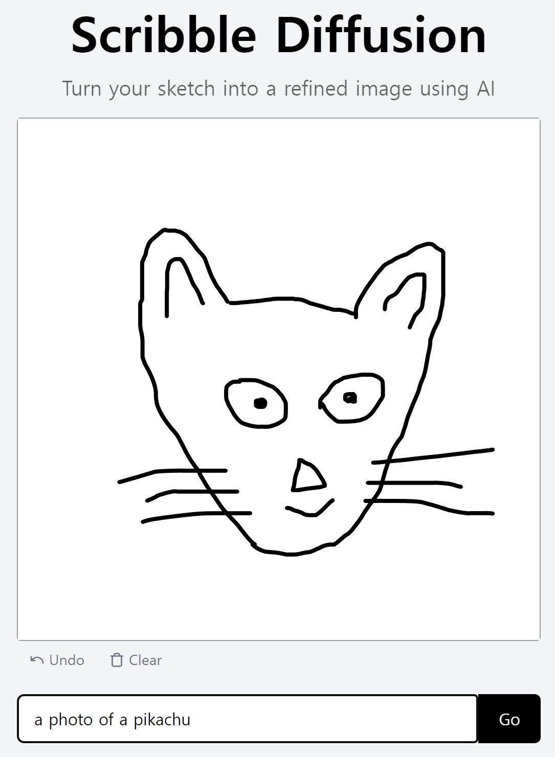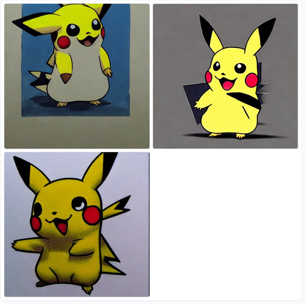 아래와 같이 그림을 그려주고, 프롬프트에 a photo of pikachu 라고 작성했습니다.