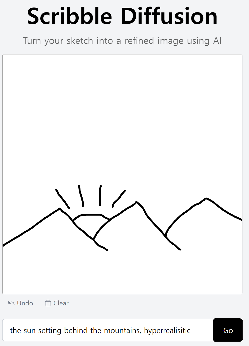 프롬프트를 입력해주시고 GO 버튼을 눌러주시면, 그림을 생성하기 시작합니다.