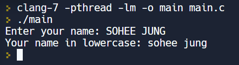 위 코드는 사용자로부터 이름을 입력받아서, 입력받은 이름을 모두 소문자로 변환하여 출력하는 프로그램입니다.