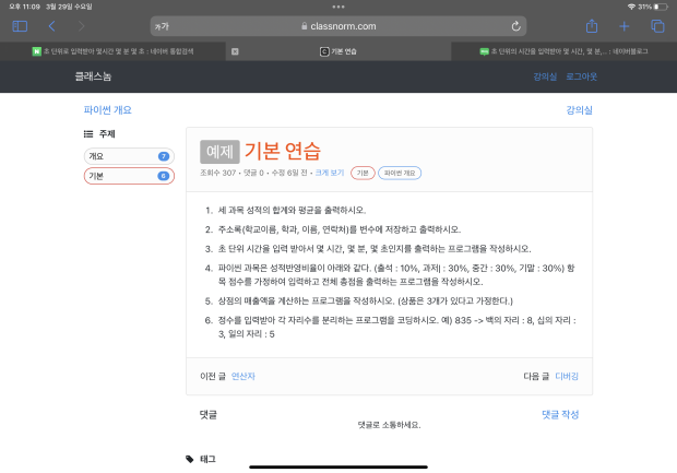 어떤분이 클래스놈 사이트 예제 문제풀이 요청하셔서 답변드립니다.